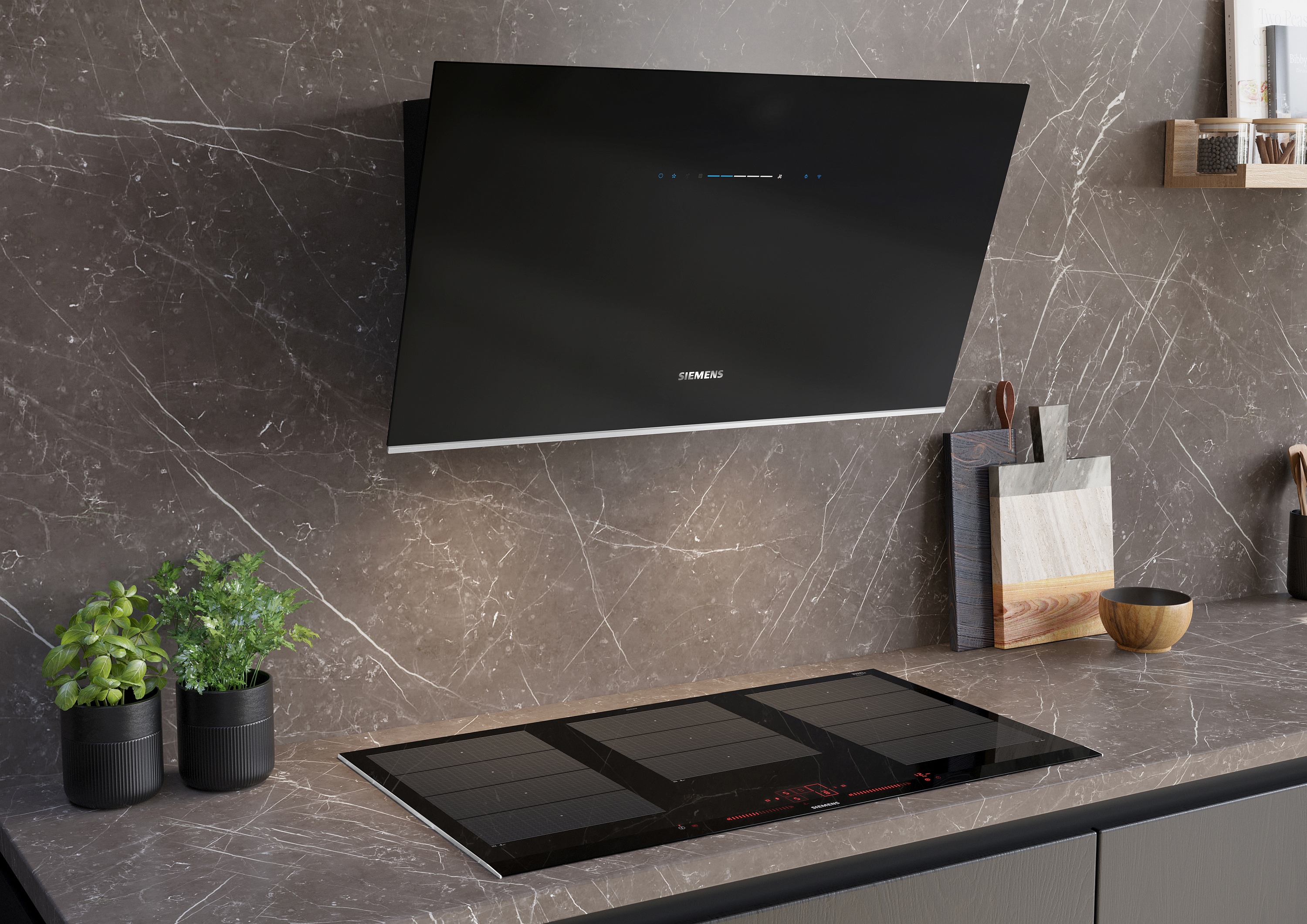Ob wandmontiert, über einer Kücheninsel hängend, in ein Kochfeld integriert oder in der Arbeitsplatte versenkt – die hochmodernen Lüftungssysteme und Dunstabzugshauben von Siemens sorgen für eine geräuscharme und dampffreie Umgebung, in der Sie Ihre kulinarischen Ambitionen verwirklichen können. Entdecken Sie charakteristisches Design und starke Leistung für jede Küchenanordnung in der Siemens Produktpalette für Lüftungslösungen.