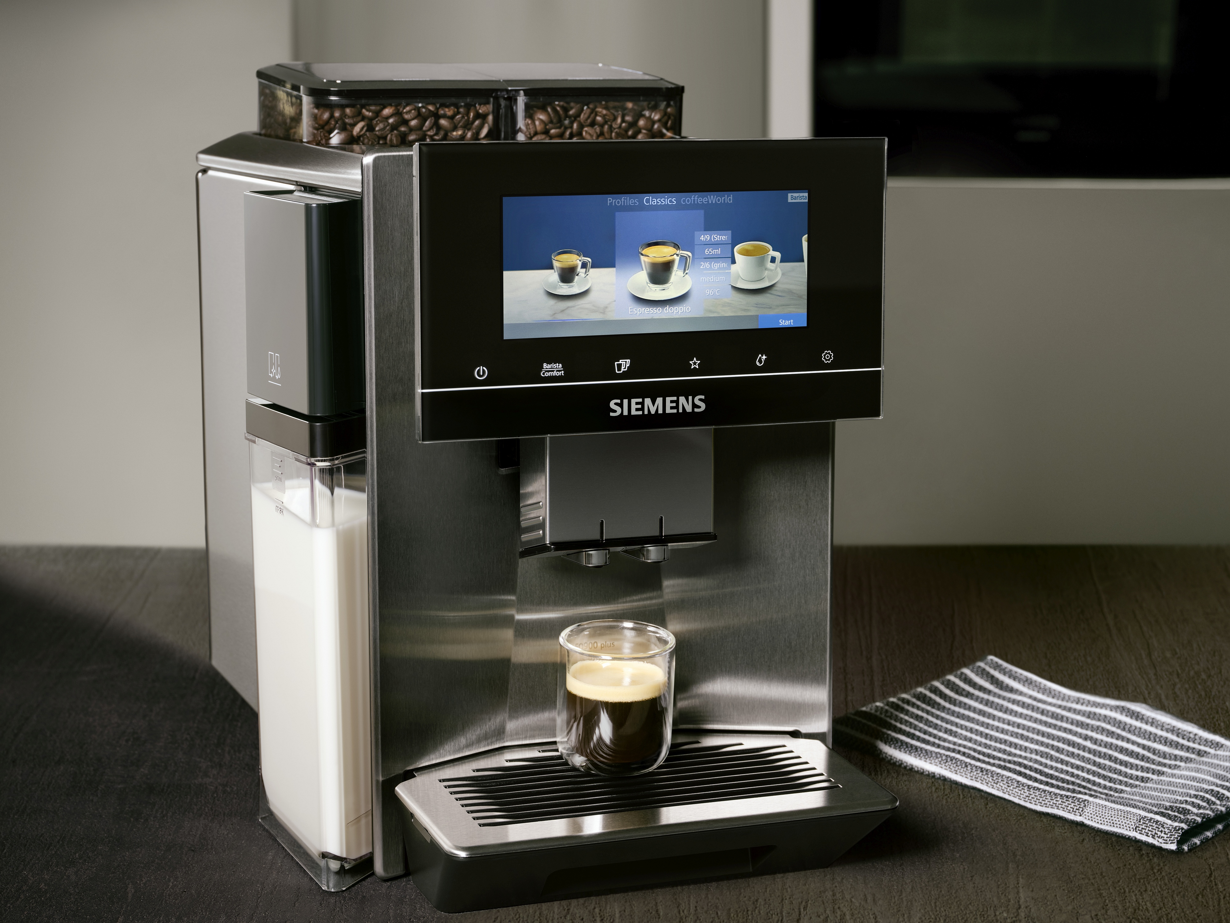 Kreieren Sie einen Kaffee, der Ihren individuellen Vorlieben entspricht – ganz wie ein Barista. Das intuitive Full-Touch Display erlaubt Ihnen eine nuancenreiche Einstellung für Ihren Lieblingskaffee. Bei einem Modell mit zwei Bohnenbehältern und eGrinder lassen Sie sich Ihre Kaffeebohnen vom Siemens EQ900 Kaffeevollautomaten so präzise mahlen, wie es Ihr Getränkewunsch verlangt. Und das Beste: Alles funktioniert superSilent, mit deutlicher Geräuschreduzierung für entspannten Kaffeegenuss.